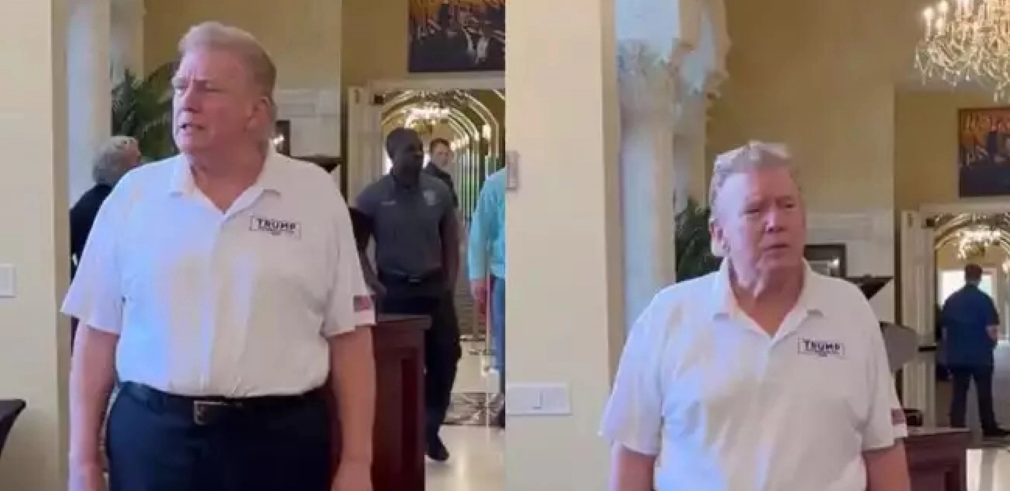 Na snimku koji kruži društvenim mrežama vidi se kako Tramp šeta i prilazi posetiocima, mašući rukama i pitajući ih da li uživaju. On dalje pita: "Da li su svi republikanci?"