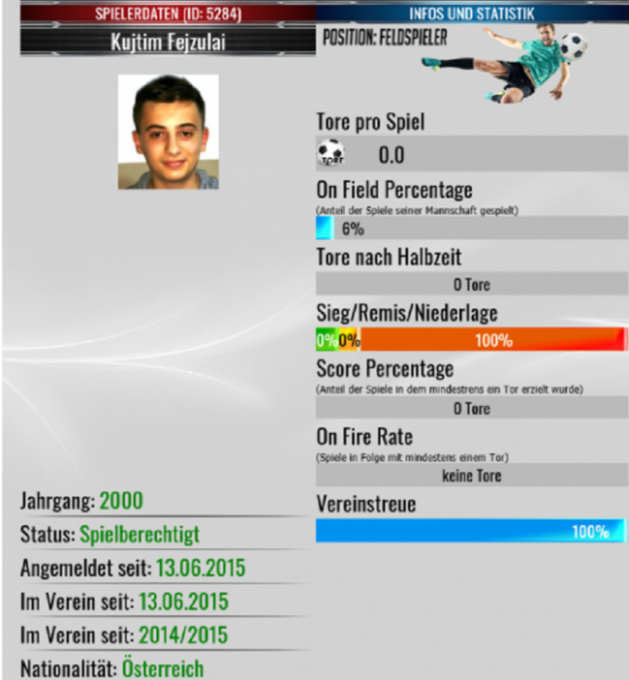 Takođe je bio registrovan na zvaničnoj veb stranici Austrijskog fudbalskog saveza.