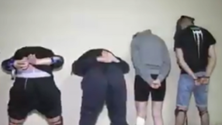 Na snimku koju je objavio i analitičar Aleks Kokčarov na Twitteru, vide se mladići i devojke s rukama u lisicama, prvo okrenuti prema zidu, a zatim prema kameri, prenosi Avaz.
