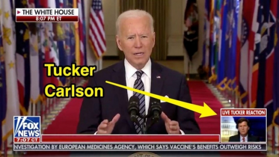 Foks njuz je dodao neobičnu novinu u emitovanje govora predsednika SAD Džoa Bajdena u četvrtak - reakcije Takera Karlsona u stvarnom vremenu.