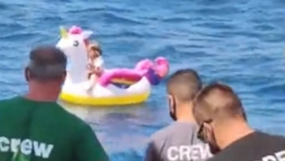 Devojčicu su morska struja i vetar odneli nekih 500 metara od obale grčkog letovališta, a ona je bila preplašena i vrištala je kada je videla da joj se približava trajekt.