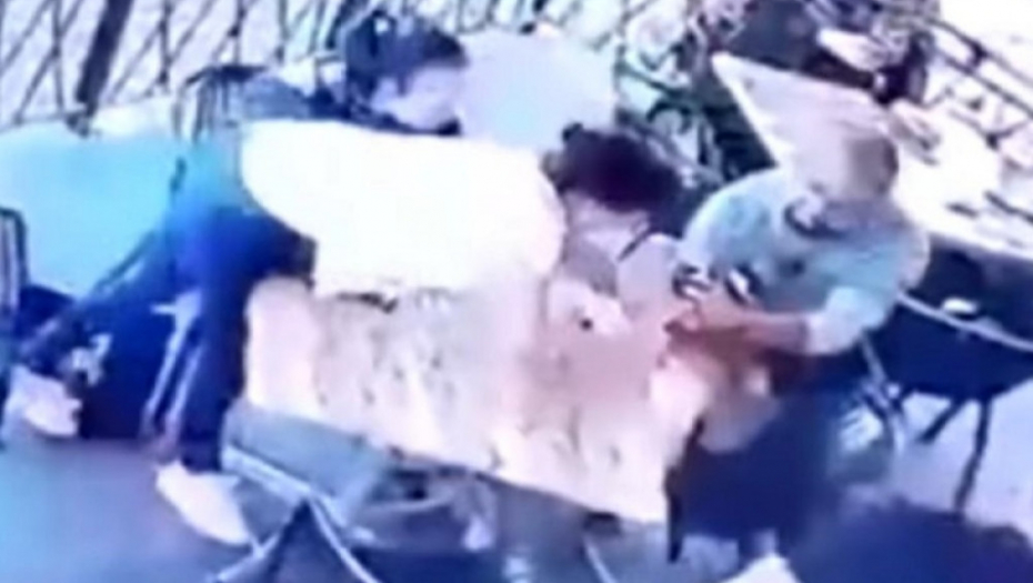 Kako pokazuje snimak nadzorne kamere, dve žene su sa devojčicom (4) sedele za stolom kada se odjednom pojavio muškarac koji je preskočio ogradu i zgrabio dete za vrat.