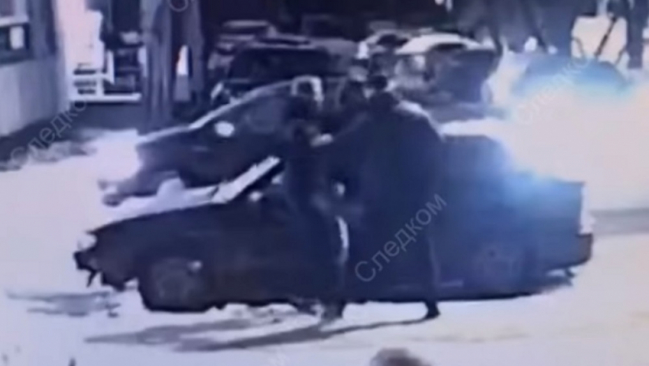 Troje otmičara izvuklo ga je iz njegovog "poršea" posle čega su ga prebacili u svoju "ladu".