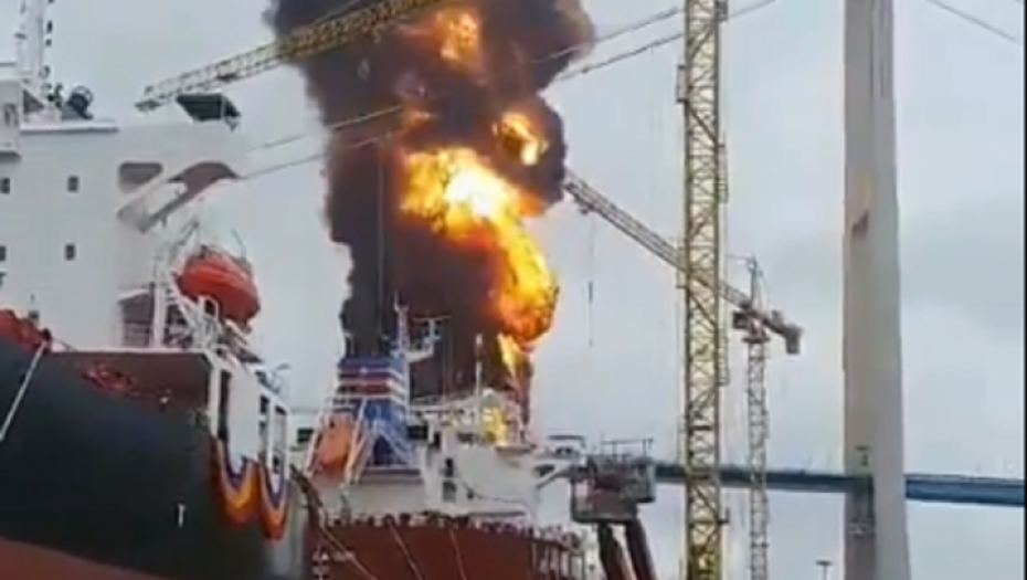 Eksplozija na brodu, vatra šiklja u nebo, jezive scene u luci! (VIDEO)