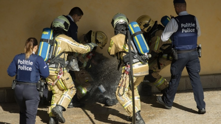 Na prostoru ispred zgrade Berlemont, sedišta evropske izvršne vlasti, muškarac je uzeo kanister s benzinom i uzviknuo nešto, ali ga je obezbeđenje brzo polilo vodom.