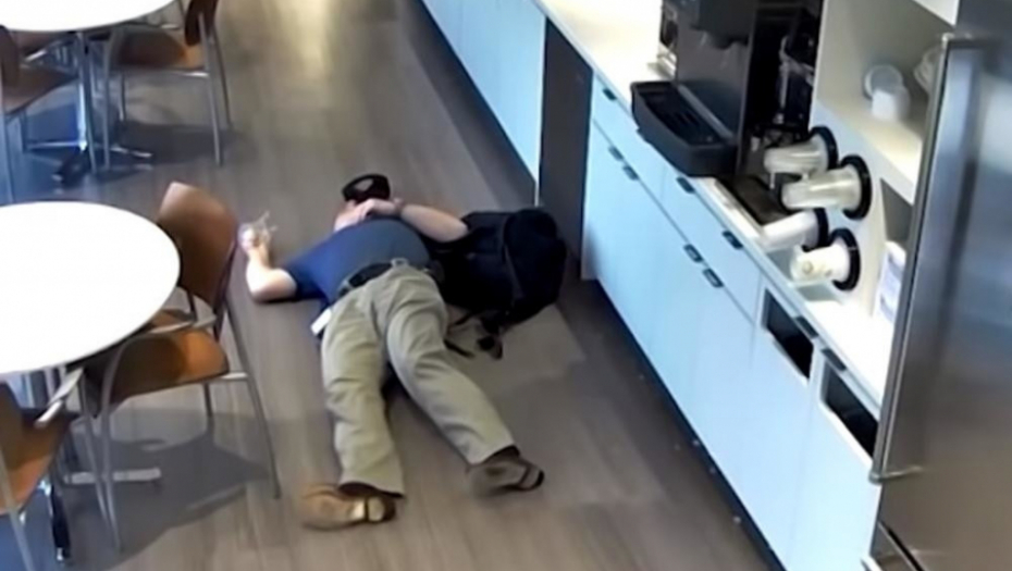 Prosuo je led po podu, proverio da nema nikoga u blizini i onda polako pao na zemlju čekajući da ga neko nađe.