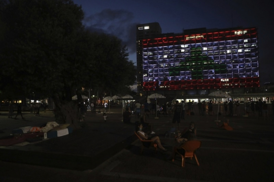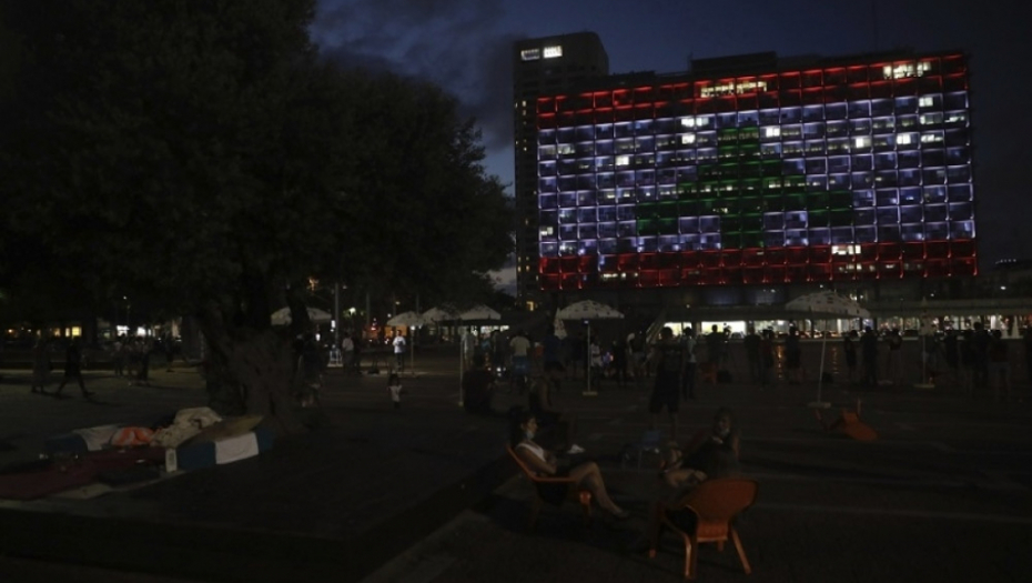 Libanska zastava zasijala se na trgu Jicaka Rabina u Tel Avivu u retkoj demonstraciji solidarnosti u Izraelu s Bejrutom koji je pogođen razornom eksplozijom.