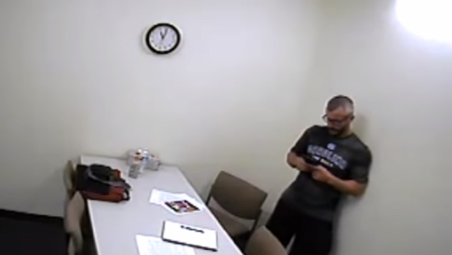 Na snimku se vidi kako Vats malo govori i nema stvarne interakcije dok policajci uzimaju otiske.