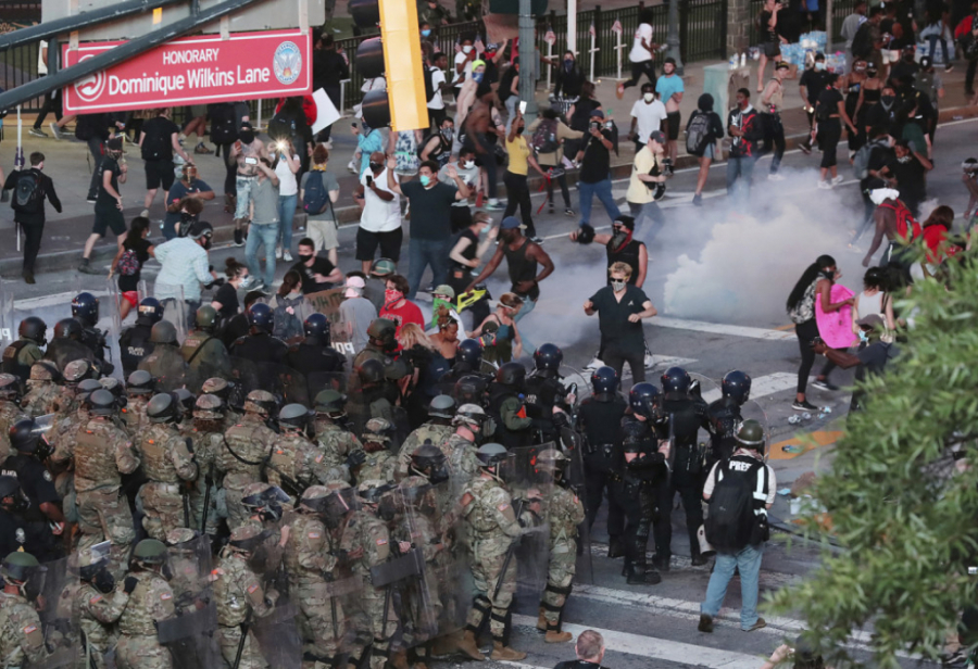 Prema izveštajima medija, helikopteri američke vojske sinoć su zaglušili Distrikt na nivou krovova prikazujući jasno "pokazivanje sile" koji je rasterao demonstrante. To se odigralo nedugo nakon što su mirni demonstranti nasilno rasterani suzavcem i gumenim mecima ispred Bele kuće.