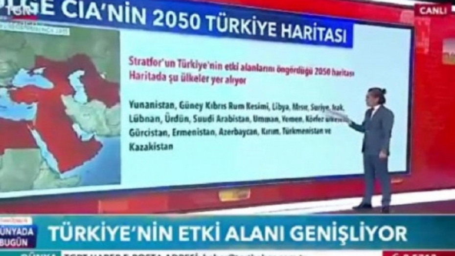 Ranije je televizija TGRT1 (TGRT1) u programu prikazala kartu koja odražava prognozu kompanije „Stratfor“ o širenju turske sfere uticaja.