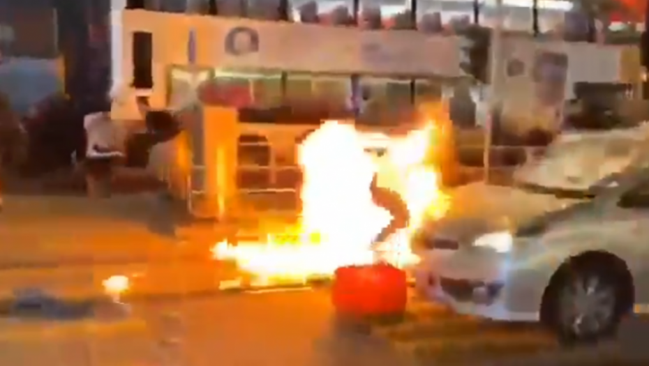Policajac je na svu sreću uspeo da izbegne da postane živa buktinja, dok su nasilnici pobegli.
