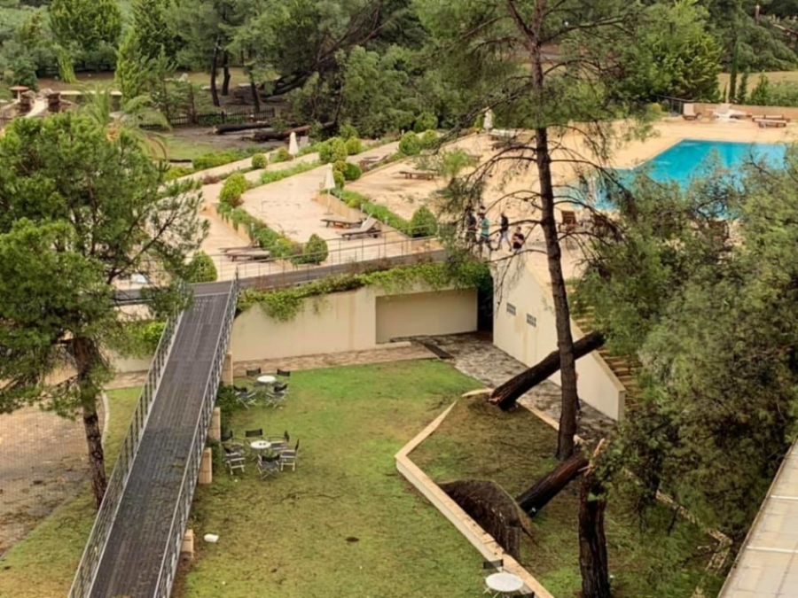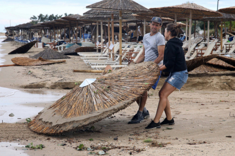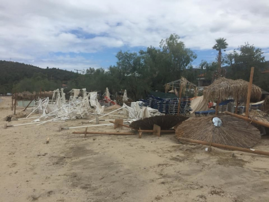 U oluji za koju pojedini navode da je najveća u proteklih nekoliko decenija, vodena bujica nosila je drveće, a u moru se mogu videti suncobrani i ležaljke iz barova na plaži dok je u Potidei došlo i do manjeg uragana.