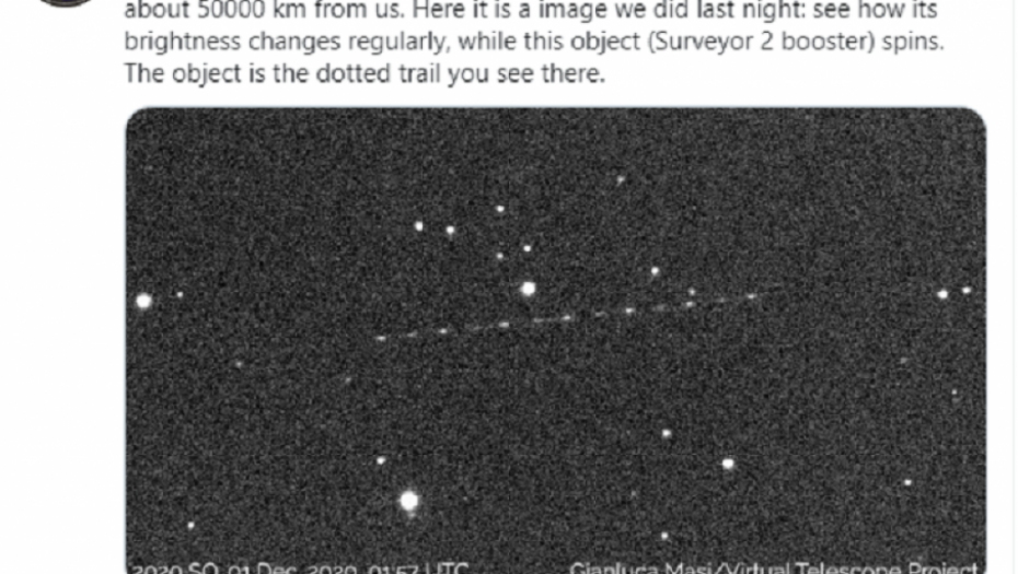 "Nismo sigurni da je ateroid(koji je prirodno telo), jer bi mogao biti i raketni potisnik korišćen prilikom misije "Survejer 2" koju je Nasa poslala na mesec još 1966. godine.", saopštili su iz Projekta Virtuelni Teleskop.