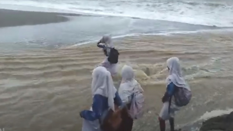 Kako bi stigle na vreme u školu, nekoliko učenica iz Malukua sa Filipina moralo je da pređe opasnu reku koja je preko noći poplavljena.