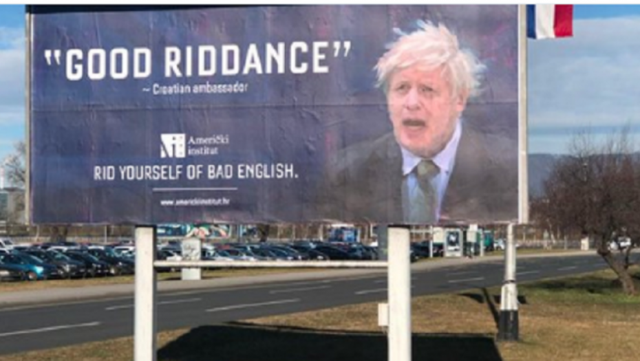 Američki Institut iskoristio je ovaj lapsus da napravi reklamu, pa je na Fejsbuk profilu objavio sliku bilborda sa slikom britanskog premijera Borisa Džonsona na kojem piše "Good riddance", ispod čega je potpisana hrvatska ambasadorka, a ispod toga tekst "Rid yourself of bad english", što znači „Rešite se lošeg engleskog“.