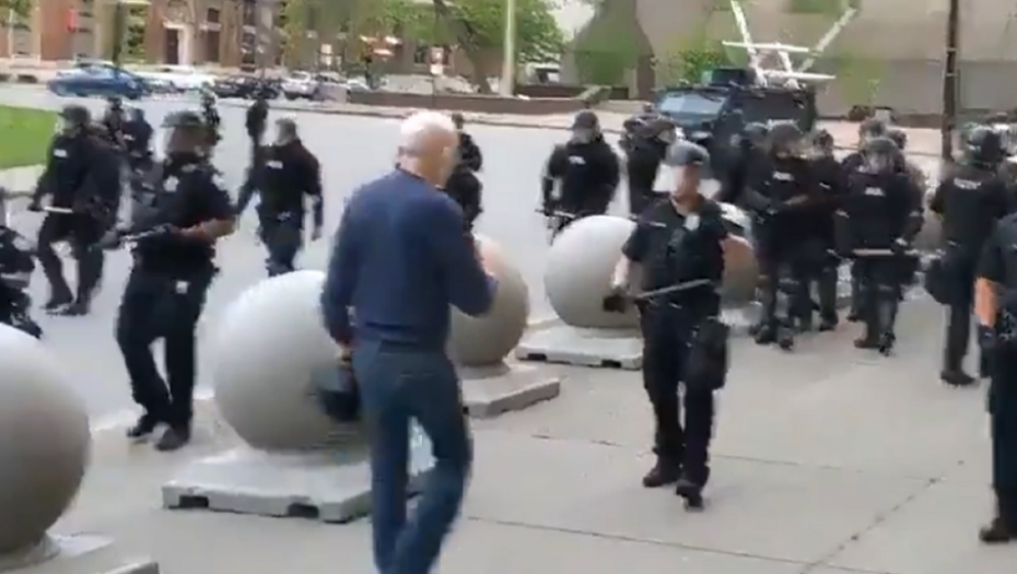 Na tviteru je objavljen video snimak na kome se jasno vidi kako stariji čovek prilazi grupi policajaca, a onda ga jedan od njih nakon kratkog razgovora gura na pločnik, trotoar.