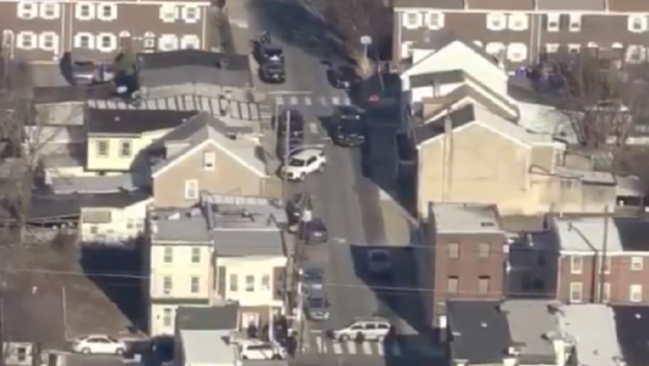 Snimci iz helikoptera lokalnih novinskih agencija prikazuju grupu policajaca koji se pregrupišu u kvartu, koji je u Frankfordu, severoistočnom delu Filadelfije.
