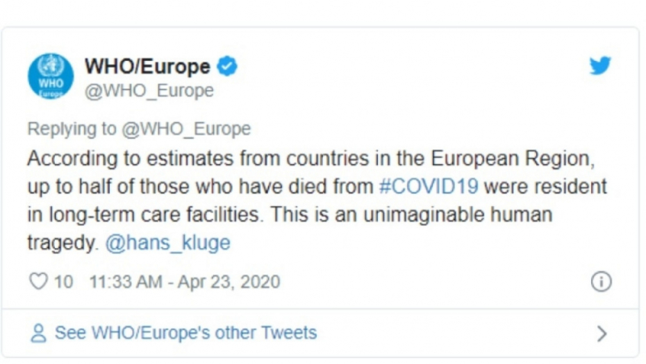 „Ova pandemija obavila je reflektore na previdjene i podcenjene uglove našeg društva. Dugotrajna nega širom Evrope je često zanemarena. Ali tako ne bi trebalo biti ", rekao je dr. Hans Kluge, pozivajući na buduća ulaganja u uspostavljanje ustanova za dugotrajno zbrinjavanje usmjereno na osobu u cijeloj Evropi.