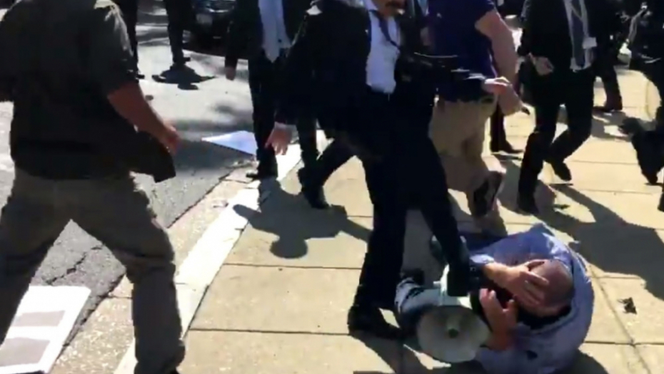 Kako se na snimcima vidi Erdoganovo obezbeđenje brutalno je tuklo demonstrante, a ovo im nije prvi put. Sličan incident dogodio se i prošle godine, kada su turski novinari tučeni i maltretirani dok su pokušavali da dokumentuju govor koji je držao Erdogan.