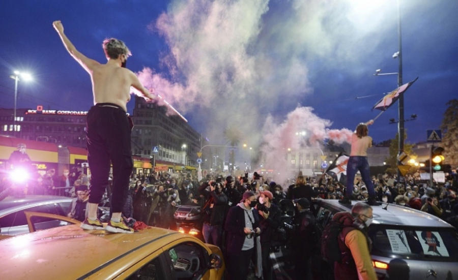 AP dodaje da su demonstranti skinuli majice i stajali na automobilima u toplesu, usput noseći transparente protiv vlade.