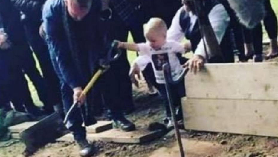 Olivija Kili, supruga Britanca Luisa Begšoua, koji je nasmrt izboden u julu u blizini svog doma u Šefildu, objavila je dirljivu fotografiju sa njegove sahrane, na kojoj se vidi kako njihov 18-mesečni sinčić Karter Begšou pridržava lopatu, kojom sahranjuju njegovog oca.