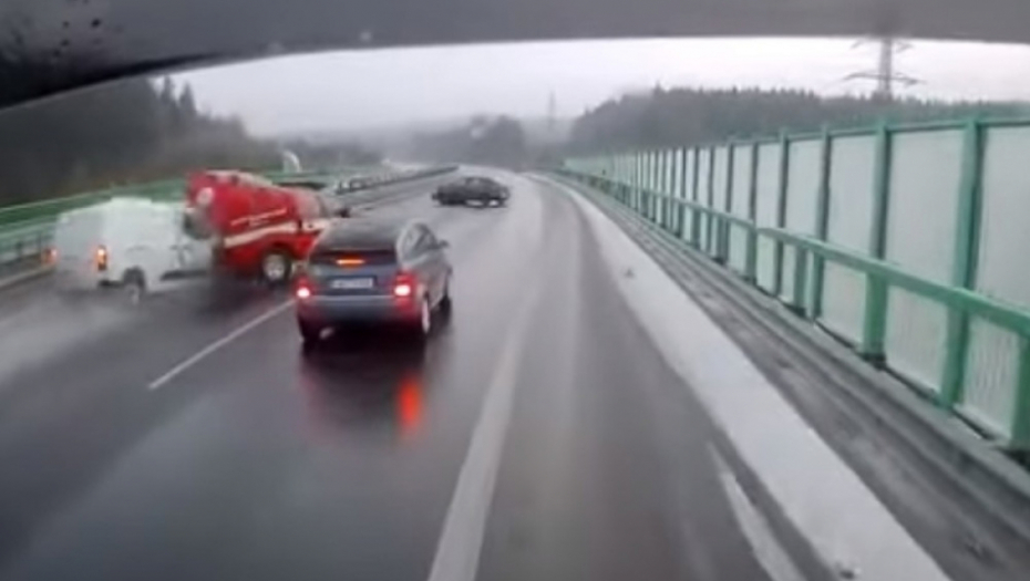 Vlažno vreme i mokri putevi su čest uzrok nesreća, a ovaj snimak još jednom to i dokazuje.
