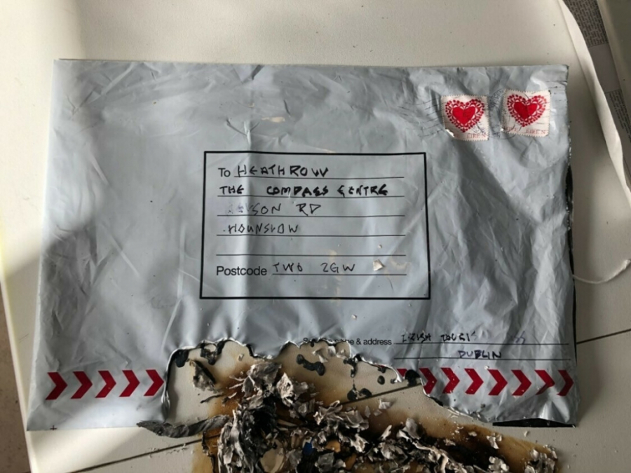 Jedna koverta, poslata na aerodrom Hitrou, delimično se zapalila, ali niko nije povređen.