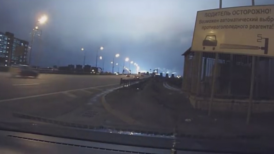 Automobil se nalazio nedaleko od mesta nesreće. Kamera je uhvatila trenutak pada aviona, u kojem se noćno nebo zabelelo kao da je dan.