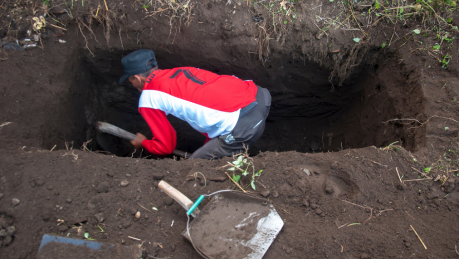 Na fotografijama koje su zabeležene u imenovanoj zemlji mogu se videti ljudi koji na groblju kopaju rake, a to rade zbog opiranja nošenju maske.