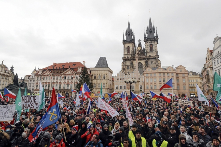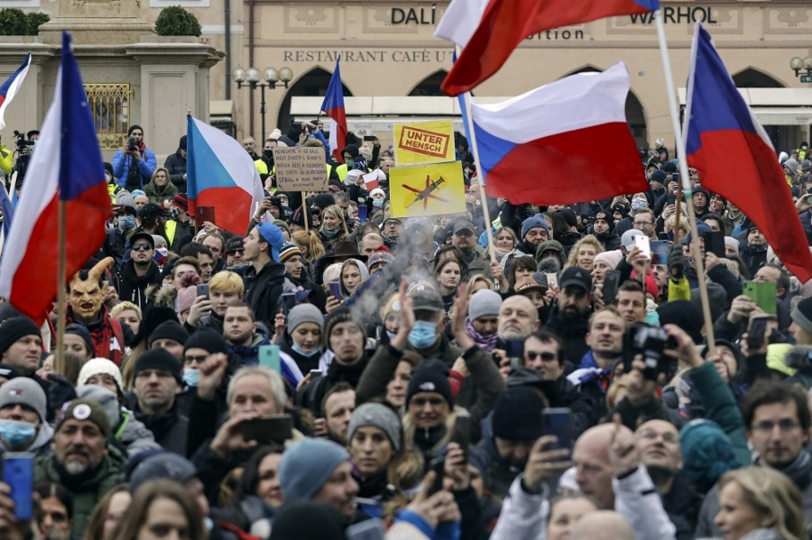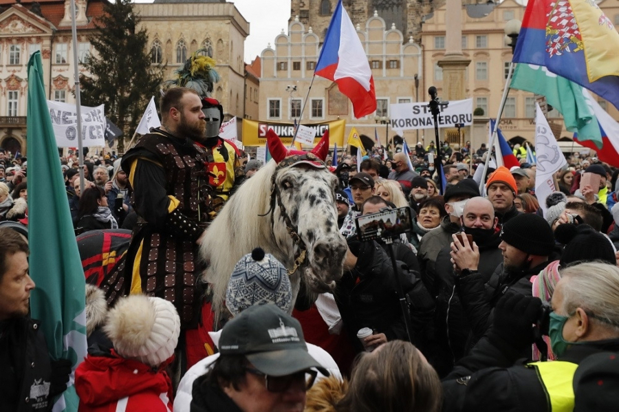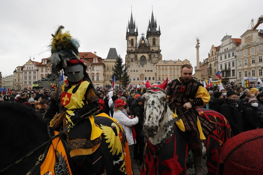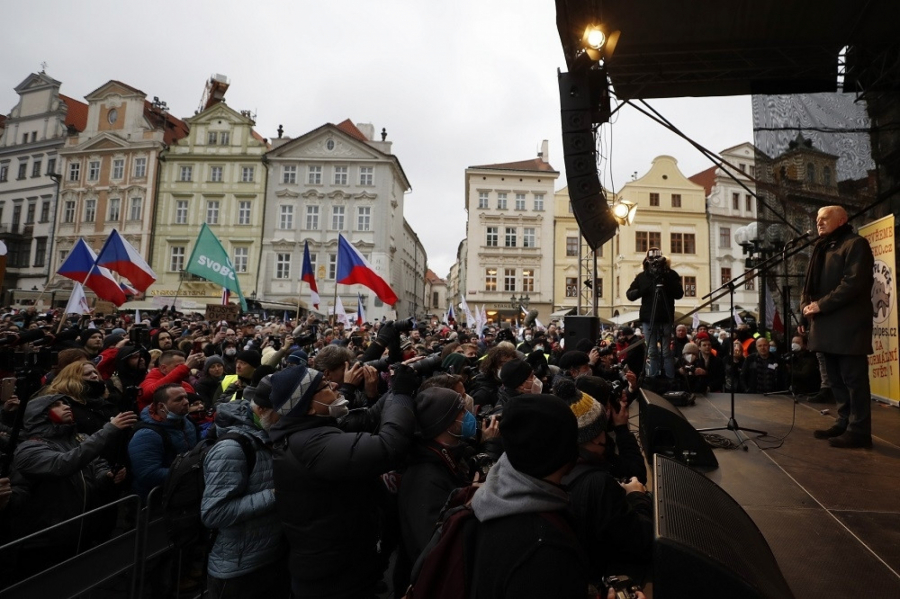 Okupljeni protivnici sanitarnih mera skandirali su "Mi hoćemo da živimo", a podržao ih je danas sa podijuma i bivši premijer i kasnije predsednik Češke Vaclav Klaus koji odbija vakcinaciju i sanitarne mere, a označen je i više puta tokom pandemije za dezinformatora koji širi lažne vesti.