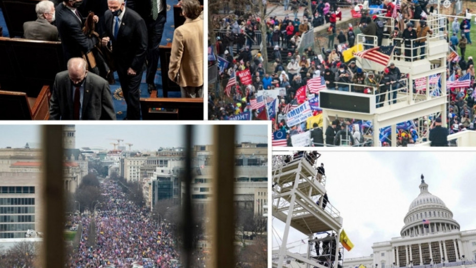 * Stotine pristalica odlazećeg američkog predsednika Donalda Trampa probile su metalne barikade i ušle u Kapitol u Vašingtonu, ispaljeni su i meci