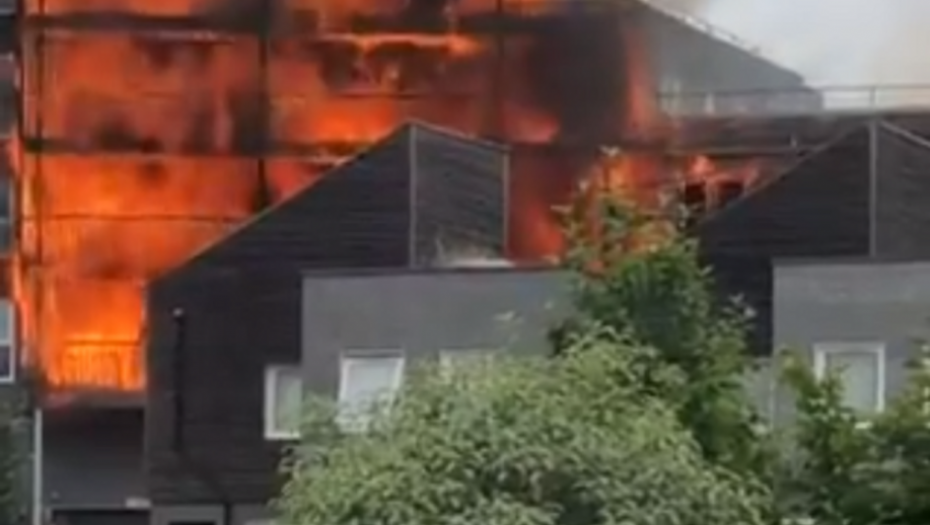 Kako se vidi na snimku koji je šerovan na Tviteru, požar je zahvatio najmanje četiri poslednja sprata zgrade, a vatra kulja iz svih prozora.