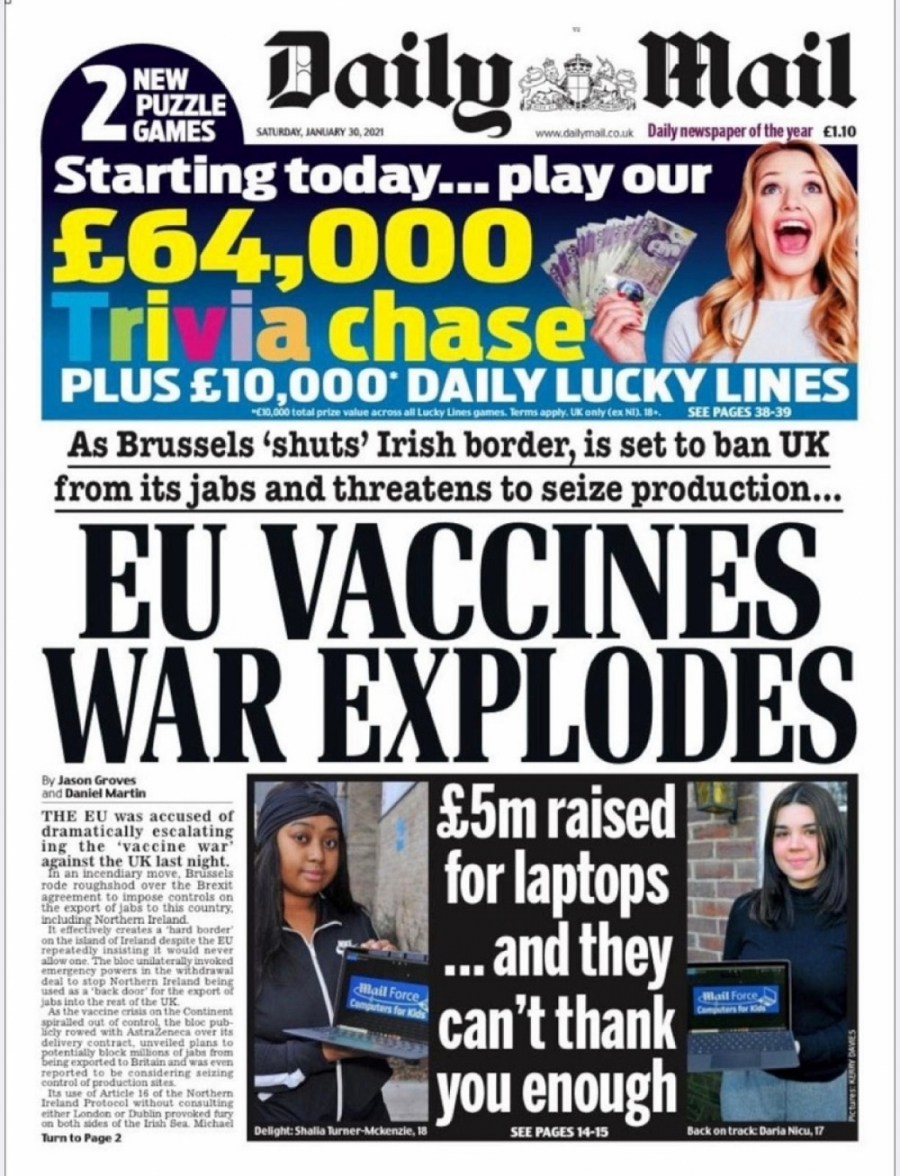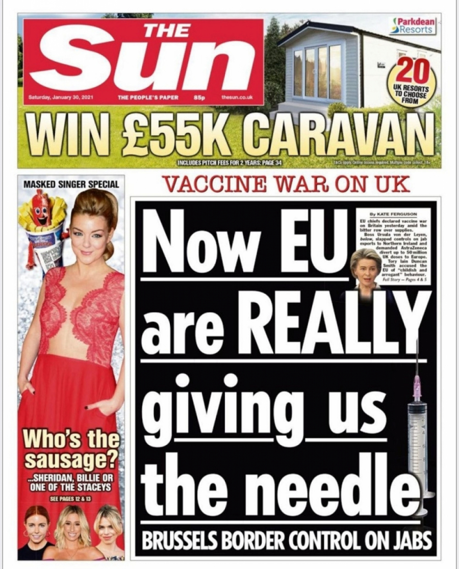 Pored ovog, širom Velike Britanije tabloidi uveliko pumpaju mržnju protiv EU koja se u krizi izazvanoj korona virusom pokazala potpuno neefikansnom i nesolidarnom.