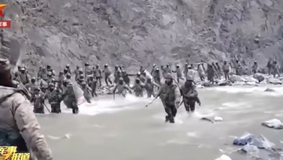 Snimci koji su objavljeni prikazuju veliki broj indijskih vojnika koji u opremi za razbijanje demonstracija prelazi reku i maršira prema manjoj kineskoj jedinici. Na snimku se vide indijski vojnici sa šlemovima, opremljeni pendrecima, drvenim i metalnim palicama i štitovima na kojima piše "policija".