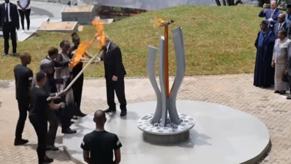 Pošto je upravo zapalio Plamen nade, baklju je opasno približio Žanet Kagame, supruzi predsednika Ruande Pola.
