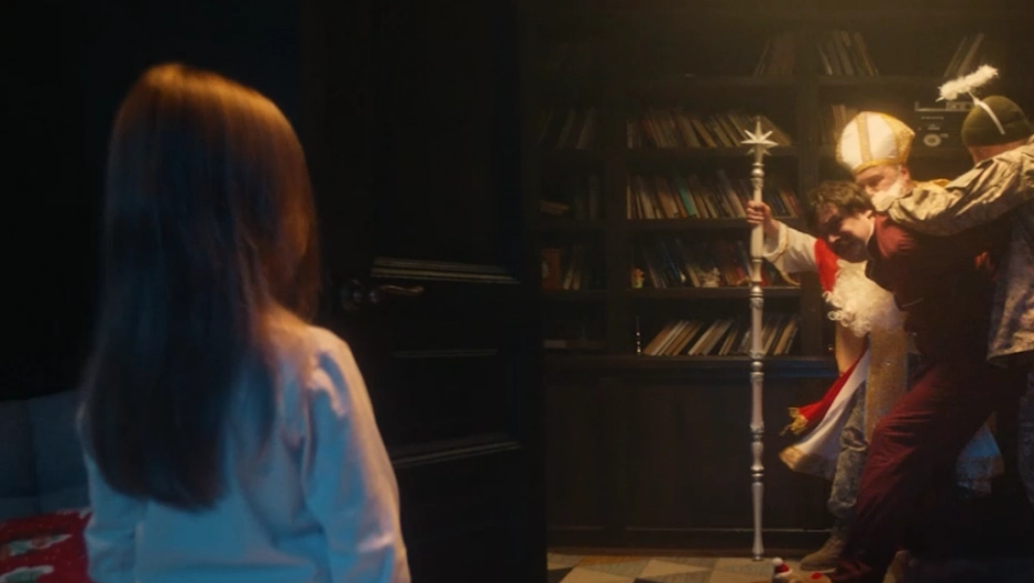 Ovaj "Sveti Nikola" otvara vrata drugom muškarcu u uniformi, maskiranom u "anđela". Zajedno hvataju oca devojčice i odvode ga, prikazujući i na taj način prisilnu mobilizaciju.