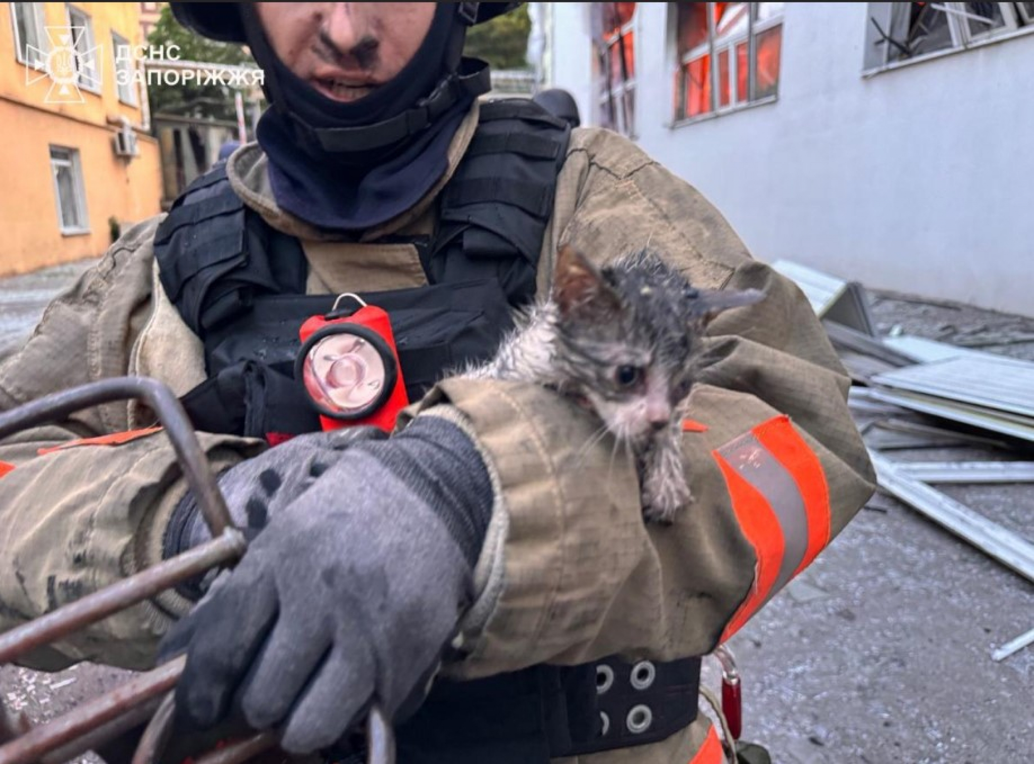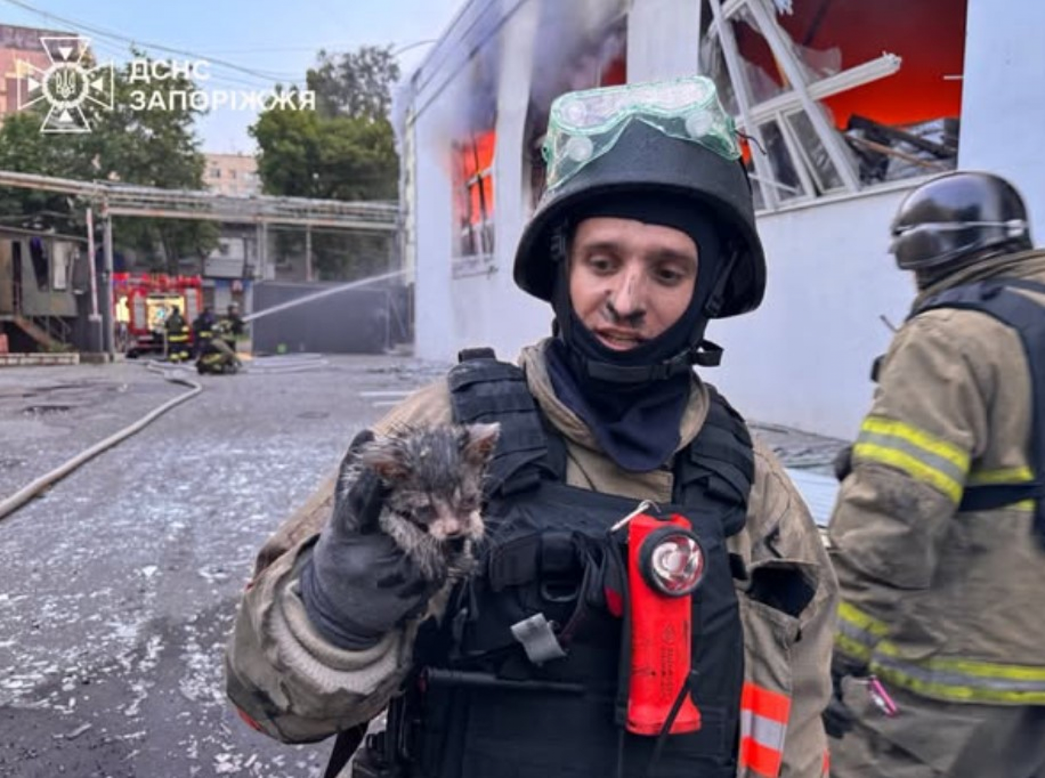 U jeku najnovijih napada na Zaporožje, koje su rano jutros izveli ruski dronovi "šahed", ukrajinski spasioci uspeli su da iz vatre izvuku živo mače. Dirljiva scena dogodila se u jednoj od zapaljenih zgrada nakon više ruskih udara.