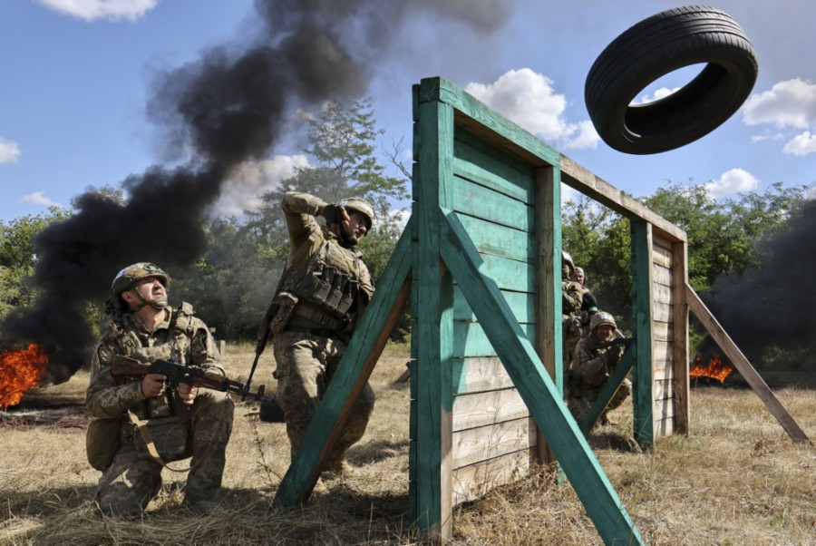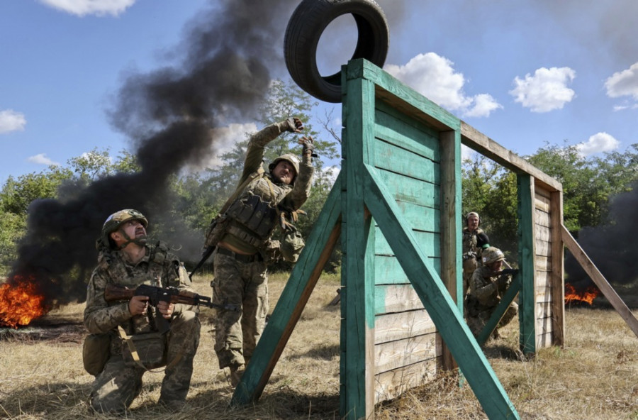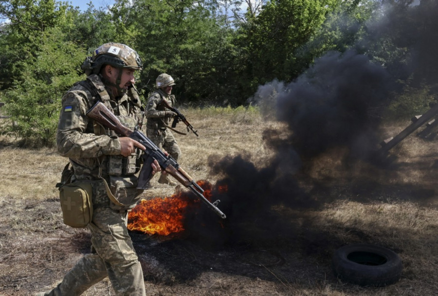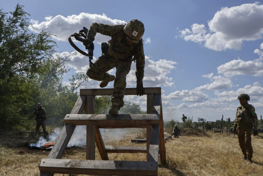 65. odvojena mehanizovana brigada Oružanih snaga Ukrajine prikazuje nove regrute kako prisustvuju vojnoj obuci na neotkrivenoj lokaciji u Zaporoškoj oblasti, na jugoistoku Ukrajine, 13. avgusta 2025. godine, usred sukoba sa Rusijom.