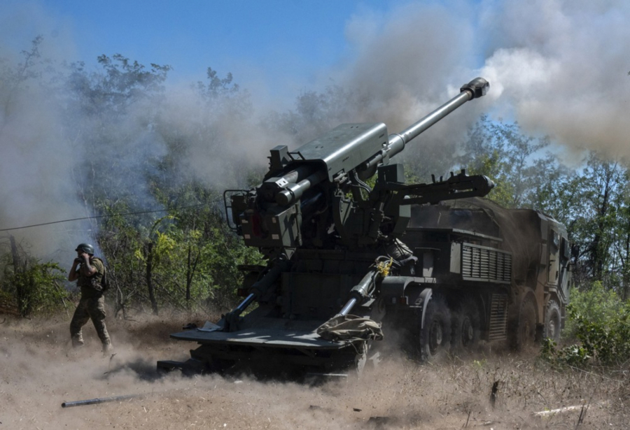 Vojnici 44. odvojene artiljerijske brigade gađaju iz oruđa 2S22 „Bogdana“ na prvoj liniji fronta u Zaporoškoj oblasti, Ukrajina, 20. avgusta 2025. godine, usred tekuće borbe protiv Rusije.