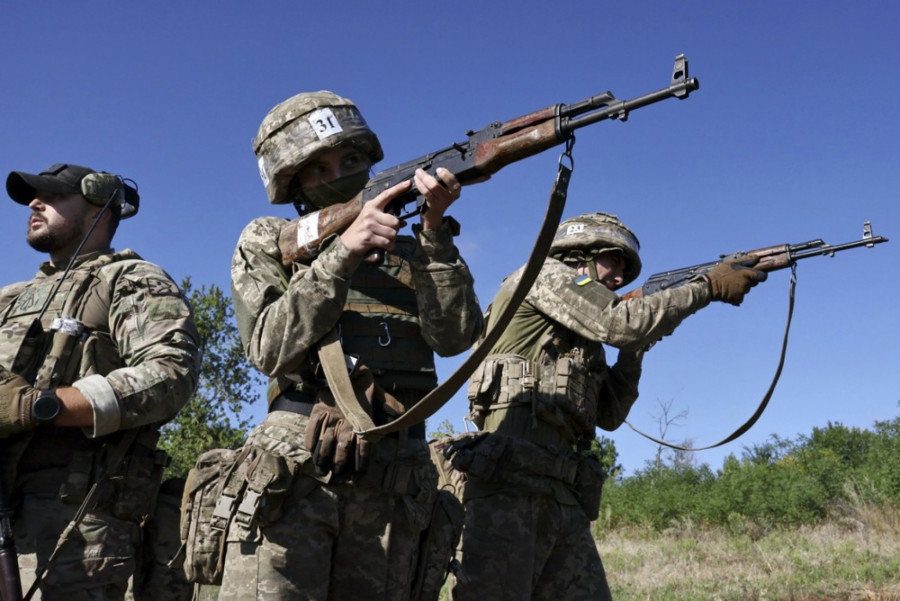 Ukrajinski regruti i regrutkinje izvode vojne vežbe u Zaporoškoj oblasti: