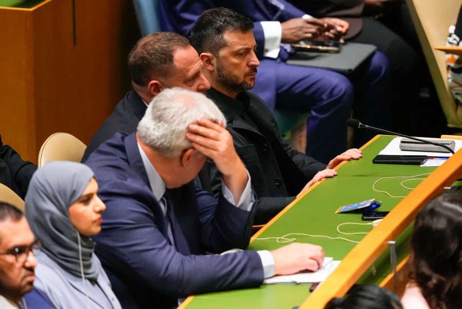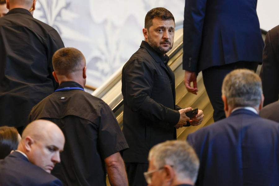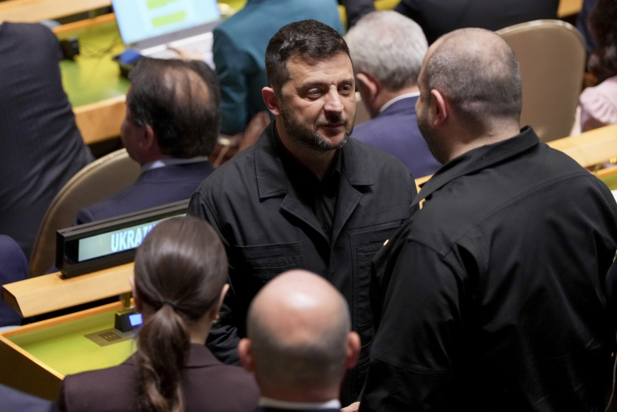 Zelenski je stigao u sedište UN okružen ljudima u civilu. On je na sebi imao crnu jaknu i pantalone.