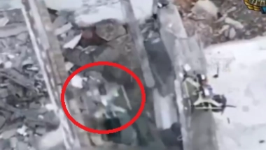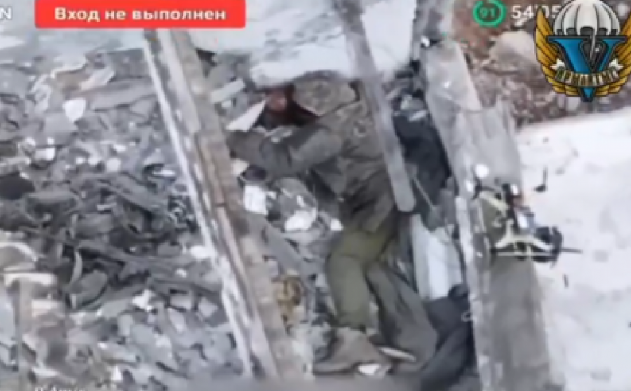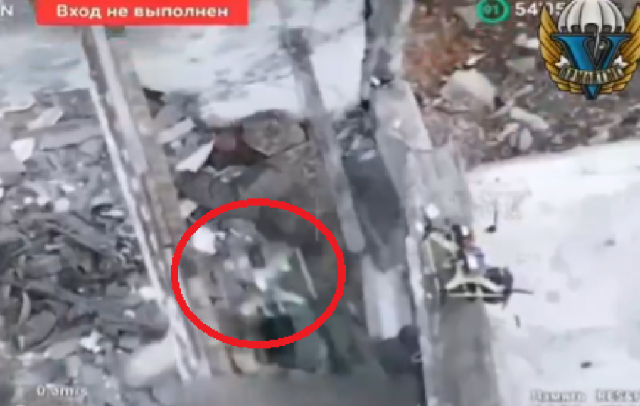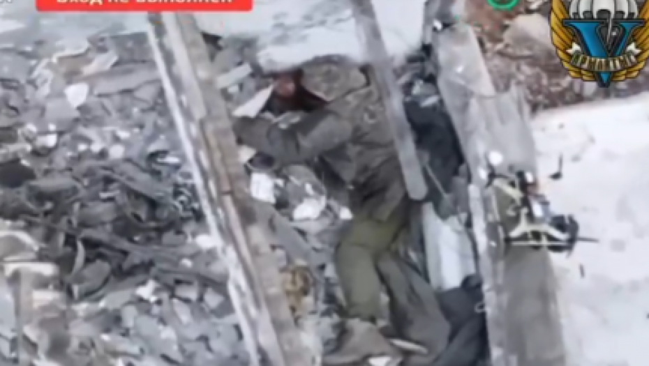Izgledalo je kao da se vojnik krije u ruševinama, međutim, dron ga je uočio i bukvalno uništio, prikazano je na snimku.