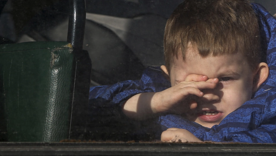 Jedna od najupečatljivijih fortografija svakako je ona na kojoj dečak sa rukama na licu gleda iz autobusa dok čeka da bude evakuisan iz Donbasa.