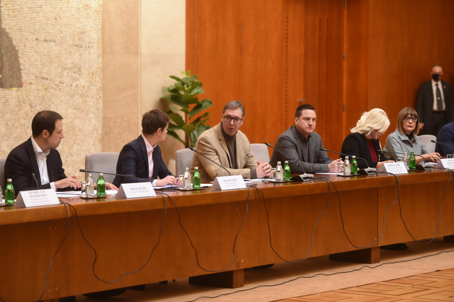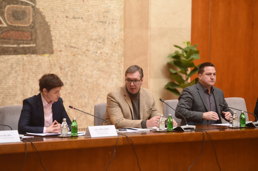 Sednici u Palati Srbija prisustvuju članovi Vlade i direktori javnih preduzeća kojima će se, kako je najavljeno, predsednik Vučić i obratiti.