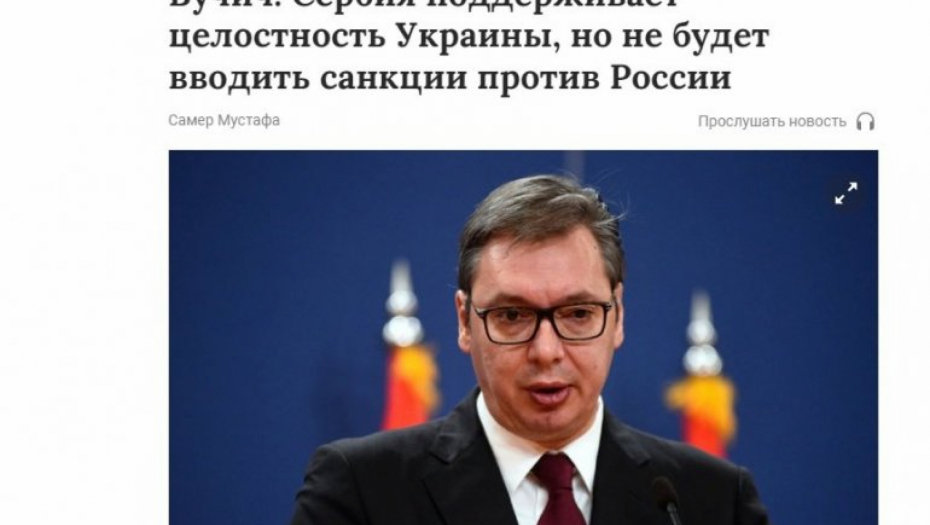 Ranije je predsednik Srbije izjavio da je vojna neutralnost njegove države "postojana politika" i da Beograd ne želi da se svrstava ni na jednu stranu u vezi sa situacijom između Rusije i Ukrajine", ističe ruska "Gazeta".