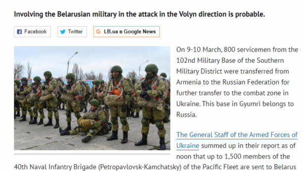 "Rusija uključuje mnoge plaćenike iz Sirije i Srbije i „mirovnjake“ iz Nagorno Karabaha", piše u tekstu na LB.ua, a što je čista laž, jer naravno nema plaćenika iz Srbije.