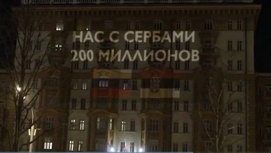 Osim toga, na zgradi je projektovana i poruka "NAS I SRBA - 200 MILIONA" ispod koje su se nalazile zajedno ruska i srpska zastava.