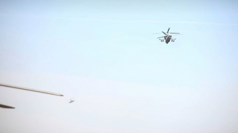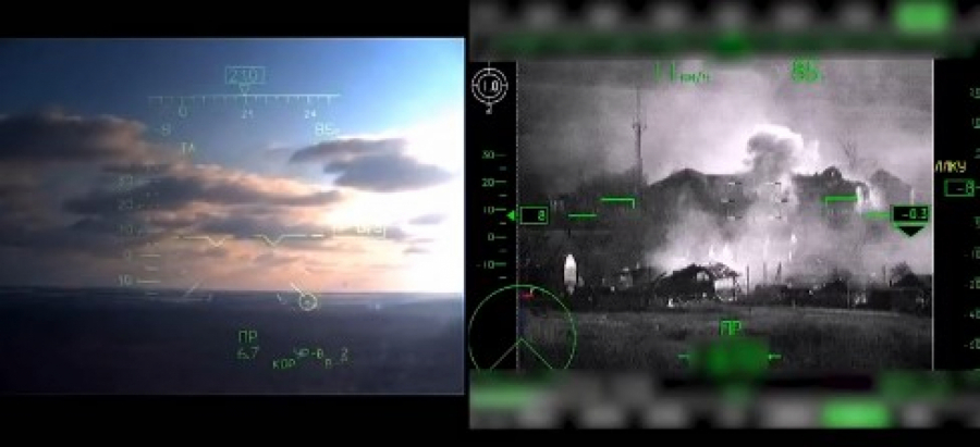 Vojni objekat je neutralisan protivtenkovskim raketnim sistemom "Vihor". Na snimku se vidi da napad izvodi let helikoptera Ka-52, koji podržavaju trupe koje napreduju.