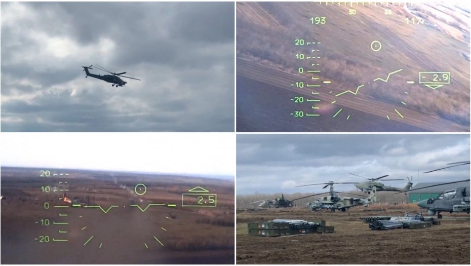 Snimak dejstva posada jurišnih helikoptera Mi-28n Vazdušno-kosmičkih snaga Rusije objavilo je rusko Ministarstvo odbrane.