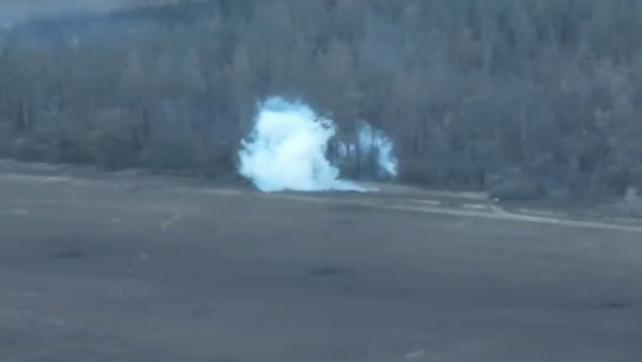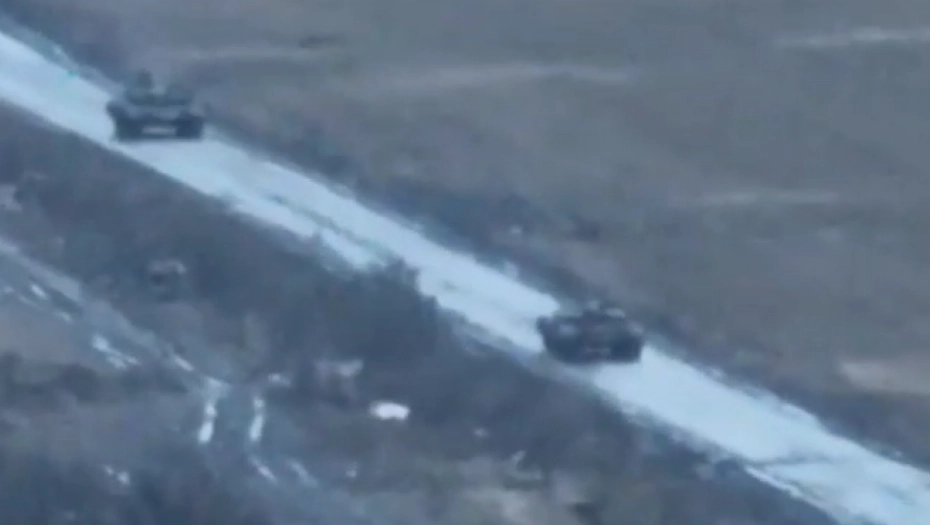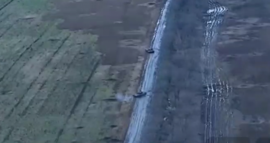 "Jedan od tri tenka se kreće sa asfaltnog puta u seosku traku i vozi do šumskog pojasa. Druga dva tenka kreću se asfaltnim putem i skreću pažnju dva tenka , koja nalaze se u drugom šumskom pojasu“, prokomentarisao je snimak ruski vojnik.